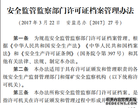 安全監(jiān)管監(jiān)察部門(mén)許可證檔案管理辦法