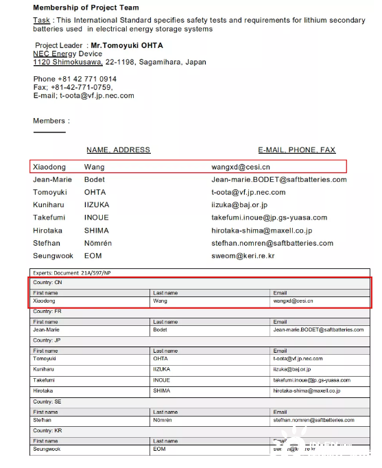 中國(guó)電子技術(shù)標(biāo)準(zhǔn)化研究院(賽西,CESI)作為IEC/SC21A國(guó)內(nèi)總歸口單位,多年來(lái)一直積極參與電池領(lǐng)域相關(guān)的國(guó)際標(biāo)準(zhǔn)化活動(dòng),負(fù)責(zé)向IEC推薦行業(yè)專家、組織電池行業(yè)相關(guān)單位成員參加IEC/SC21A國(guó)際會(huì)議、答復(fù)IEC文件和投票工作。賽西專家作為IEC 63056:2020的項(xiàng)目組成員和起草人直接參與了該標(biāo)準(zhǔn)的起草工作。