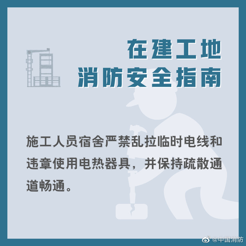 在建工地的施工現(xiàn)場(chǎng)防范措施不到位,易燃可燃材料多,施工人員消防安全意識(shí)談薄,都容易造成火災(zāi),收下這份在建工地消防安全指南,確保工地消防安全!