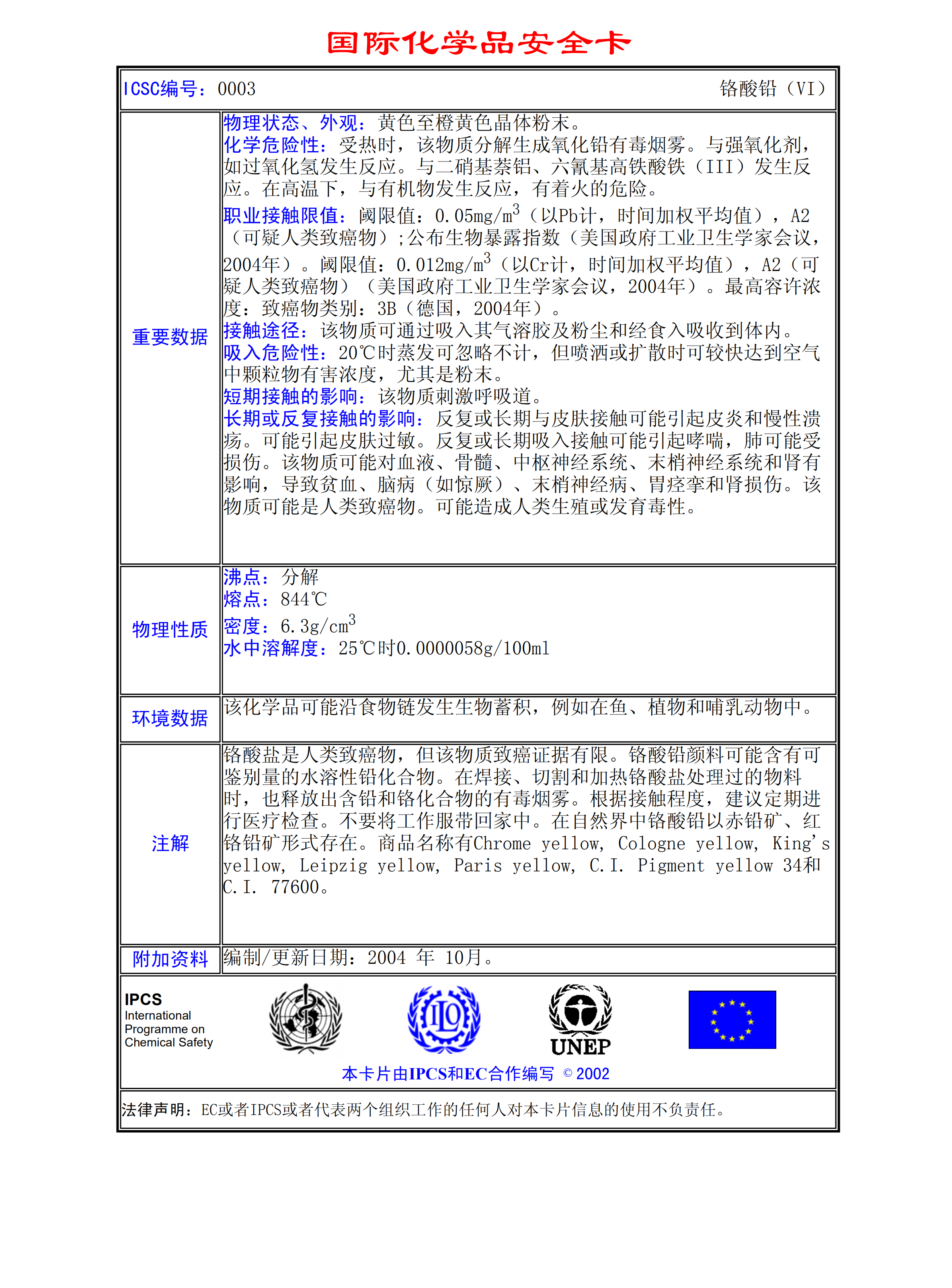 鉻酸鉛MSDS