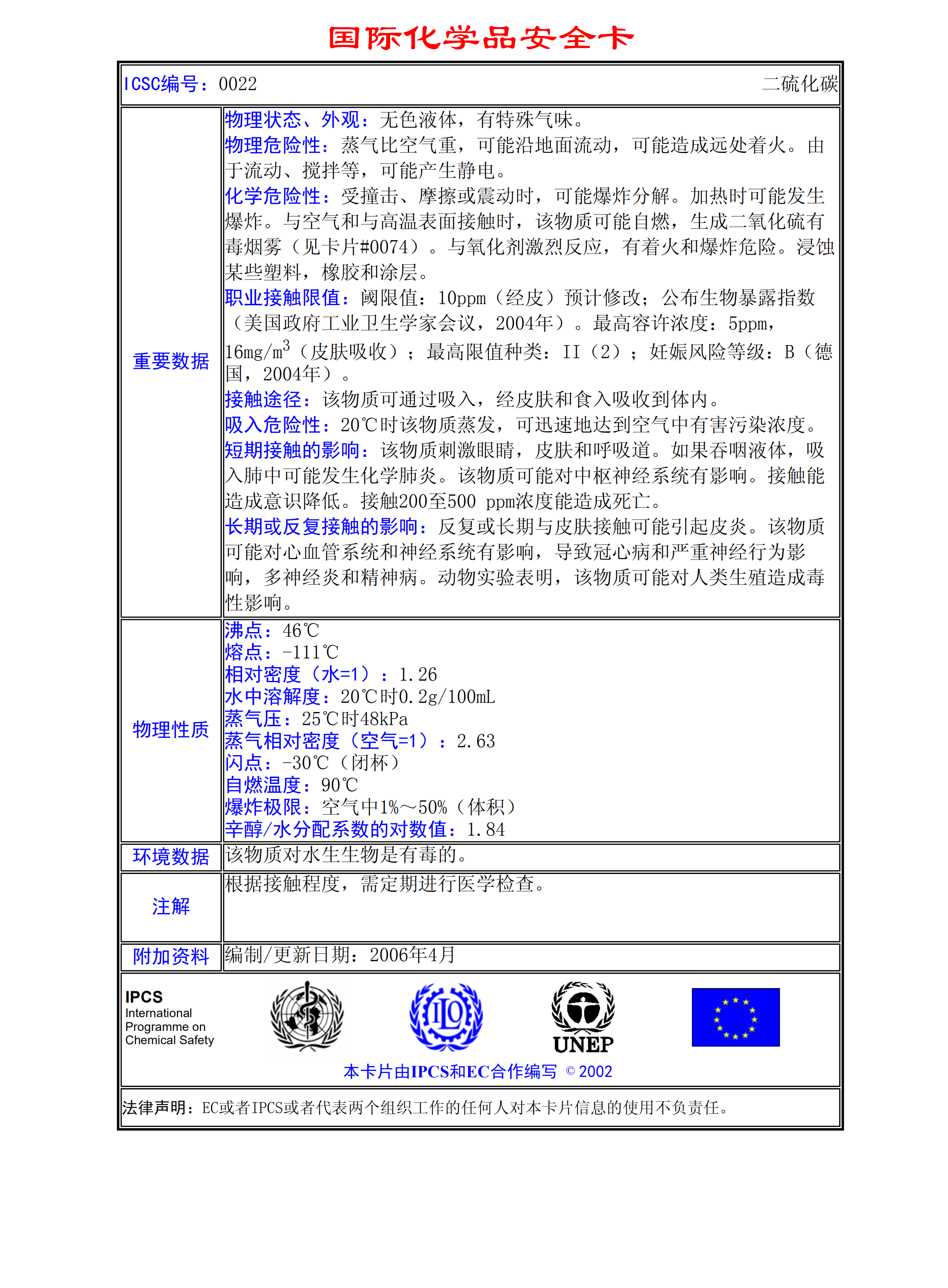 二硫化碳MSDS