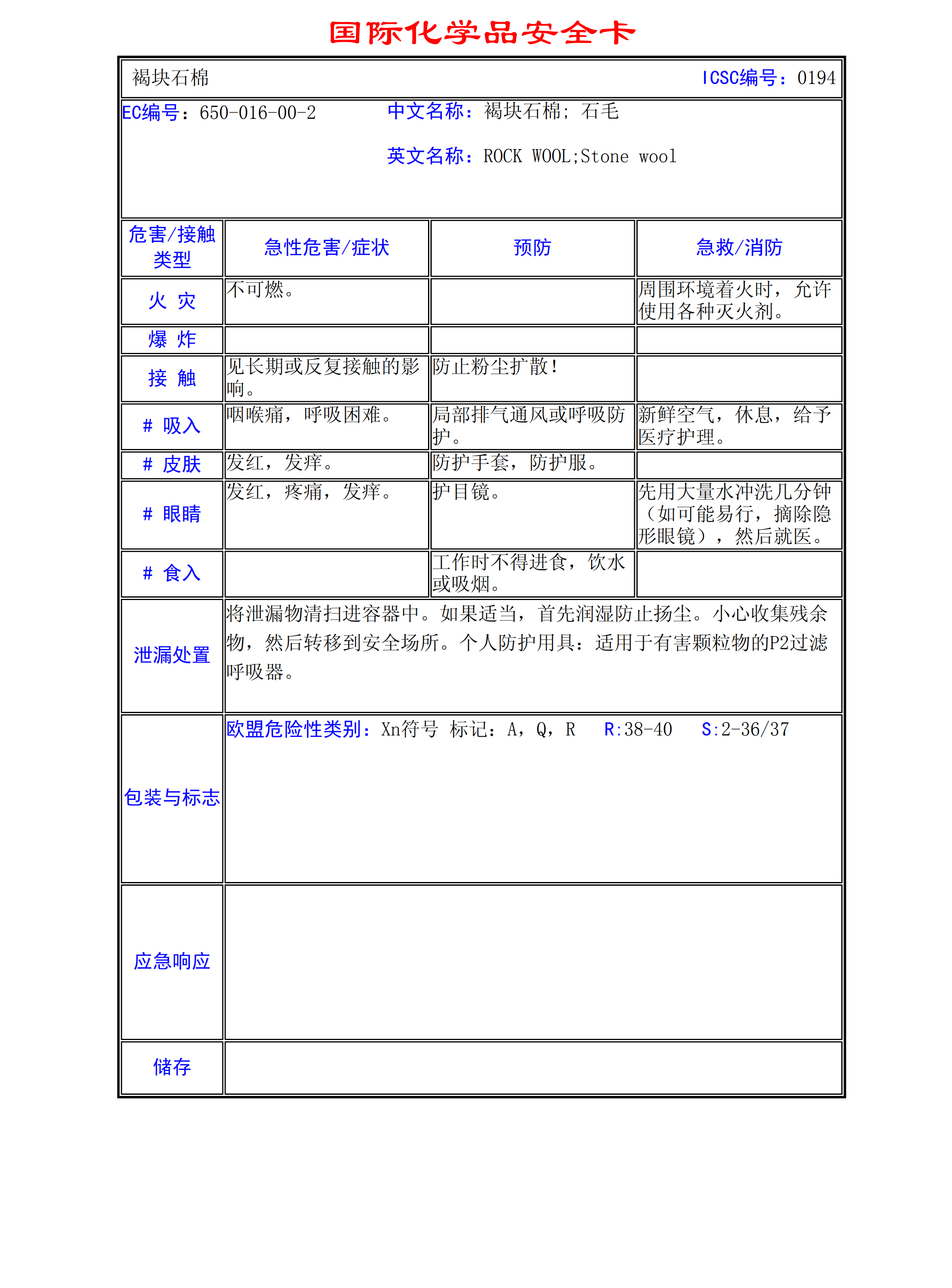 礦渣棉MSDS