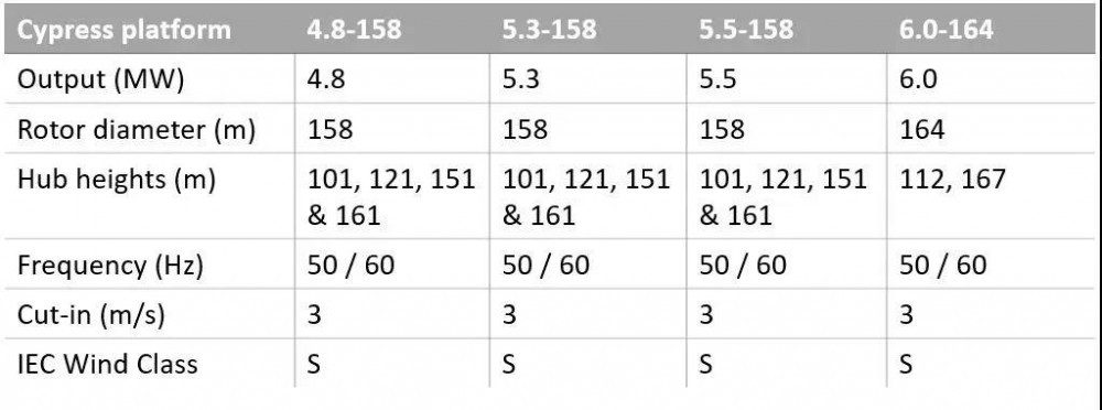 據(jù)了解,GE Cypress 5.3MW-158機(jī)型于2018年底上市,采用創(chuàng)新型兩段式碳纖維葉片。據(jù)GE稱,“Cypress”平臺(tái)的設(shè)計(jì)旨在全生命周期內(nèi),使GE能夠提供更廣泛的額定功率覆蓋范圍和輪轂高度,以滿足5MW范圍內(nèi)的客戶需求。與GE的3 MW機(jī)組相比,該平臺(tái)在平臺(tái)壽命期內(nèi)的年發(fā)電量(AEP)可以增加50%。