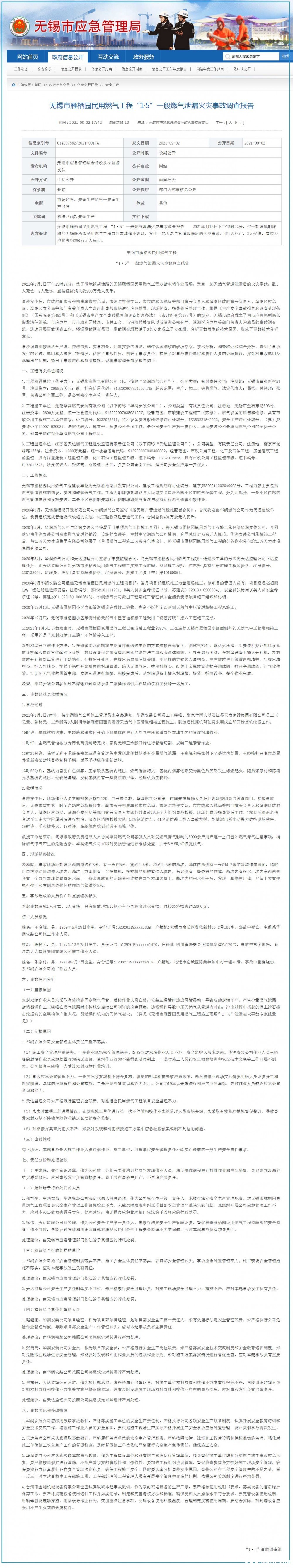 江蘇省無(wú)錫公布一起“挖爆燃?xì)夤艿馈笔鹿收{(diào)查結(jié)果
