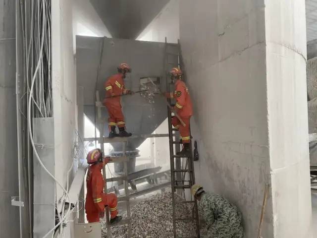 消防救援人員趕到現(xiàn)場后,經(jīng)偵查和詢問得知,石灰斗罐罐體約2米深,裝有約5立方米石灰料。