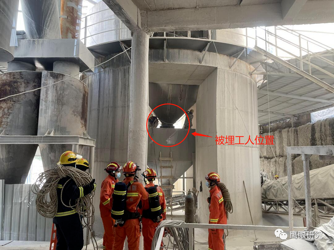 事發(fā)時,被困工人發(fā)現(xiàn)石灰斗罐下料口被堵塞,便進(jìn)入斗罐底部開展疏通工作,罐壁四周的石灰塊突然崩塌,造成該工人當(dāng)場被石灰料埋壓,埋壓深度約1.7米。